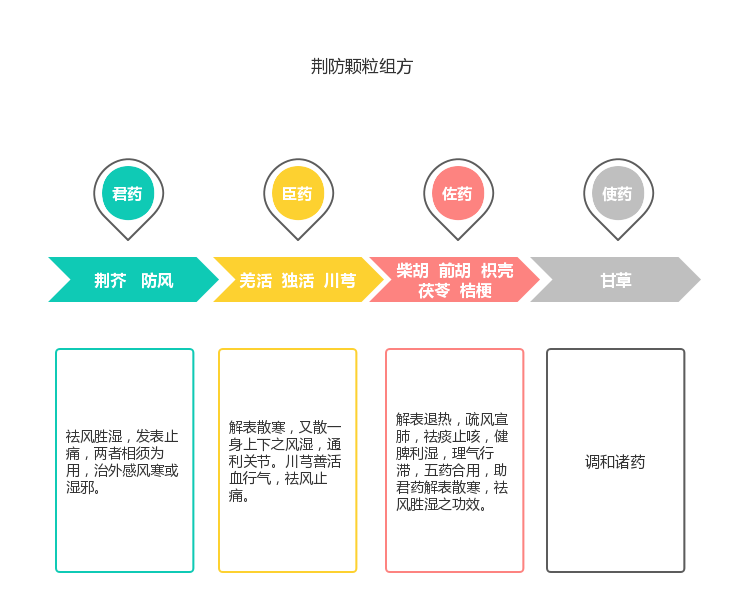 荊防顆粒組方來源于大師級(jí)經(jīng)典名方“荊防敗毒散”,其首載于明?張時(shí)徹《攝生眾妙方》中,為一融合三朝醫(yī)家經(jīng)驗(yàn)之精華,歷經(jīng)近五百年流傳驗(yàn)證的經(jīng)典名方。方中荊芥、防風(fēng)、羌活、獨(dú)活、柴胡、前胡、川芎、枳殼、茯苓、桔梗、甘草與古方藥味及配比均保持一致,是荊防敗毒散的經(jīng)典重現(xiàn)。《本草正義》評(píng)價(jià)該方為“四時(shí)感冒之神劑”,《古今醫(yī)統(tǒng)大全》稱其為“瘟疫通治劑”。